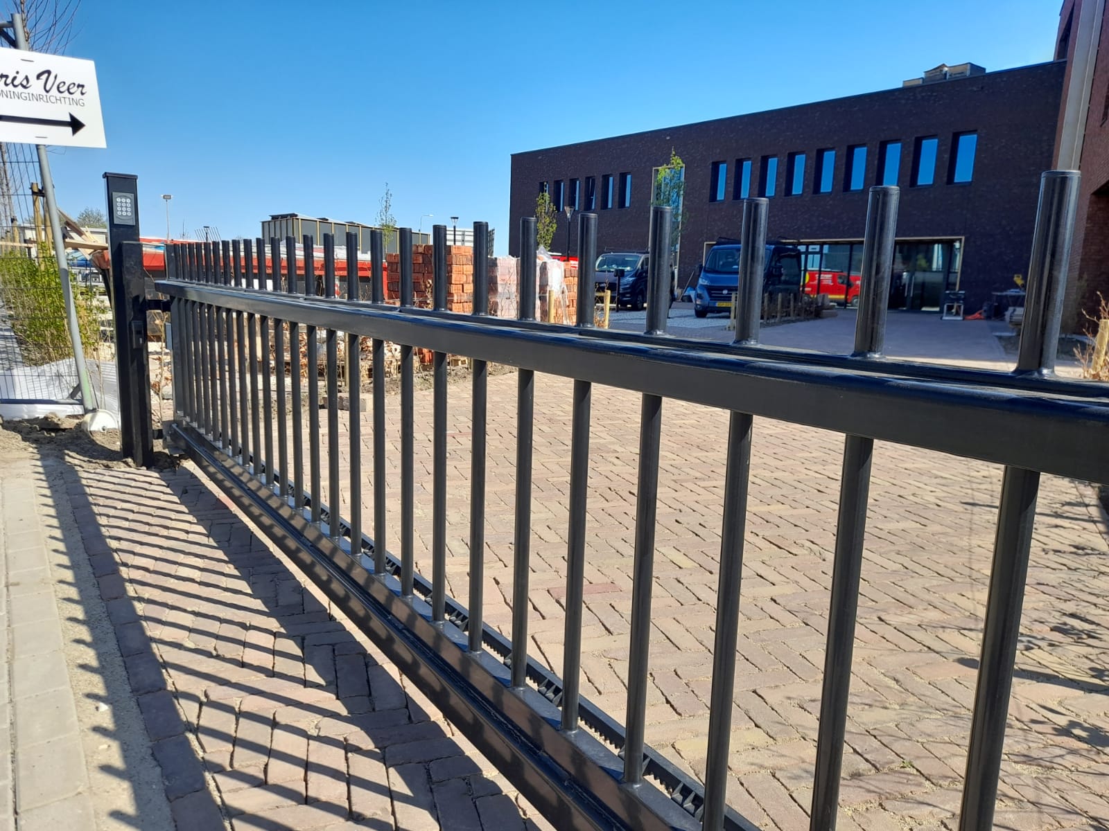 In Schoonhoven heeft timbersteel een parkeerterrein afgesloten met elektrische schuifpoorten.
