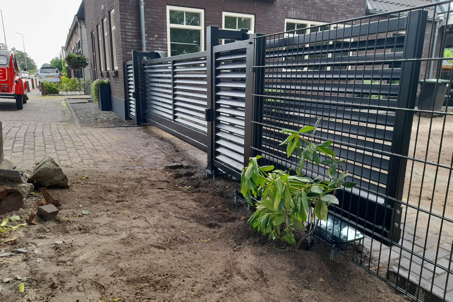 De kleur zwart RAL 9005 past goed bij de strakke uitstraling van deze poort.